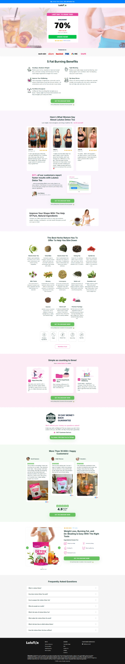 Lulutox is **not a medicine** and is **not intended to diagnose, treat, cure, or prevent any disease**. For best results, it is recommended to use it consistently as part of a healthy lifestyle and to consult a healthcare professional if you are pregnant, nursing, taking medications, or have underlying health conditions.